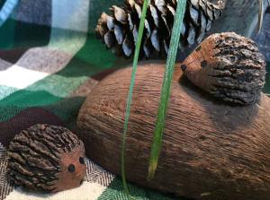 You’ll have your choice of three options: walnut shell hedgehogs, a walnut shell owl, or a tiny gnome neighborhood from acorn caps and other bits.