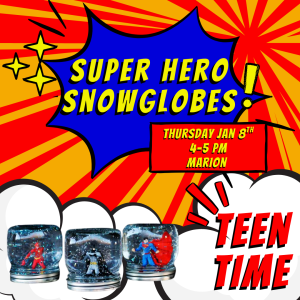 Join us to create your very own superhero-themed snow globe. Choose your favorite hero, add sparkle, and design a globe that’s uniquely yours. All supplies are provided.